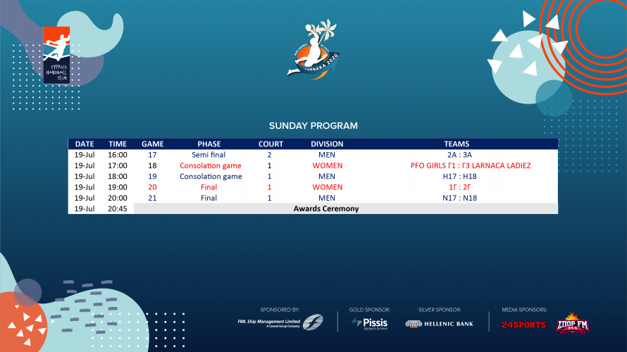 Και οι 2 φετινές διοργανώσεις τελούν υπό την αιγίδα της Κυπριακής Ομοσπονδίας Χειροσφαίρισης και τις στηρίζει ο Δήμος Λάρνακας.