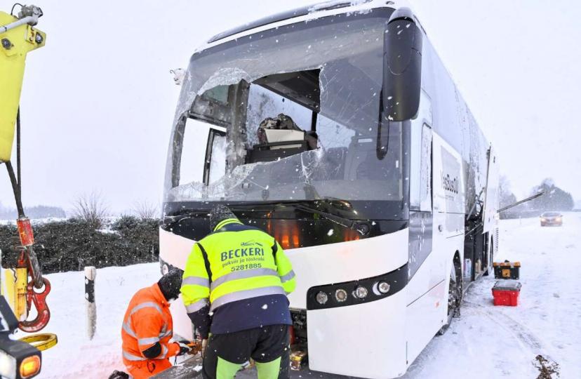 Τις πρώτες πρωινές ώρες του Σαββάτου (10/01), το λεωφορείο που μετέφερε την αποστολή της Εθνικής μας ομάδας από το Ταλίν στην Πόλβα εξετράπη της πορείας του και ανετράπη.