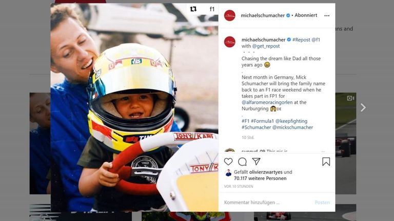 Η τελευταία καλωσόρισε επίσημα τον Μικ με μία συγκινητική ανάρτηση στα δικά της μέσα κοινωνικής δικτύωσης. Το συγκλονιστικό μήνυμα είναι «Ακολουθώντας το όνειρο – όπως ο μπαμπάς κάποτε» και περιλαμβάνει μία φωτογραφία με τον γιο του Σούμι παιδάκι να κρατάει το τιμόνι ενός καρτ κάτω από το στοργικό βλέμμα του περήφανου πατέρα!