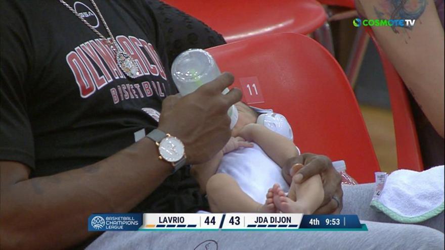 Ο Αμερικανός είδε από κοντά το ματς και μάλιστα είχε μαζί τον νεογέννητο γιο του, που τον φρόντιζε ανεξάρτητα από την περίσταση. Συγκεκριμένα, ο παίκτης των «ερυθρολεύκων» είχε αγκαλιά το νέο μέλος της οικογένειάς του και τον τάιζε με το μπιμπερό.