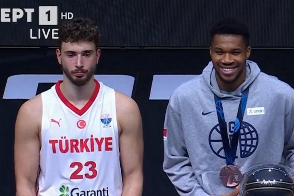 Η βράβευση της κορυφαίας πεντάδας το Eurobasket 2025, μας προσέφερε το απόλυτο κοντράστ, με τον χαμογελαστό Γιάννη Αντετοκούνμπο να φωτογραφίζεται δίπλα-δίπλα με τον απογοητευμένο Αλπερέν Σενγκούν.