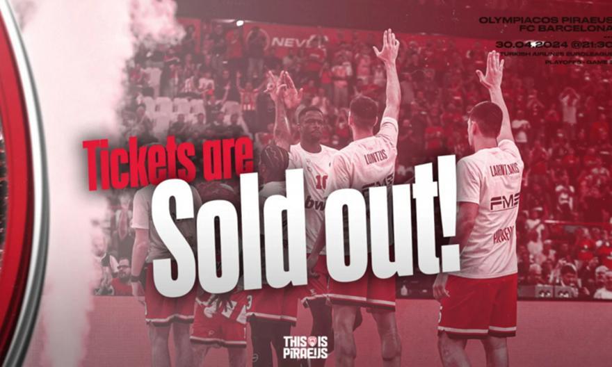 «Η ΚΑΕ Ολυμπιακός ανακοινώνει πως τα εισιτήρια για τον 3ο προημιτελικό με την Μπαρτσελόνα (30/04,21:30) εξαντλήθηκαν μέσα σε ελάχιστες ώρες από την κυκλοφορία τους!