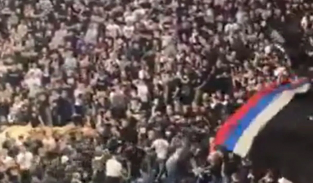 Σύμφωνα με όσα μεταδίδουν τα σερβικά ΜΜΕ, αιτία για να ξεσπάσει η ένταση, ήταν ένα πλακάτ πολιτικού περιεχομένου που αναρτήθηκε, το οποίο προκάλεσε διχασμό στην κερκίδα.