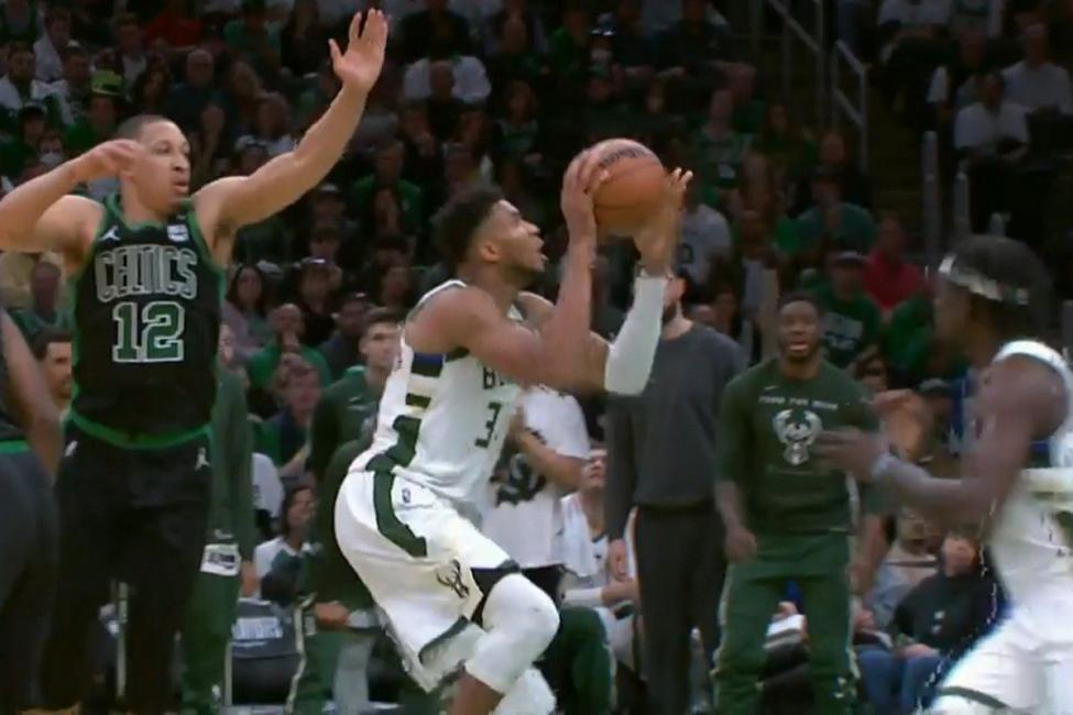 Ο Έλληνας σταρ στη διάρκεια του τετάρτου δεκαλέπτου πέτυχε και ένα εκπληκτικό καλάθι καθώς έδωσε ασίστ στον εαυτό του μέσω ταμπλό και εν συνεχεία κάρφωσε τη μπάλα στο καλάθι των Σέλτικς.