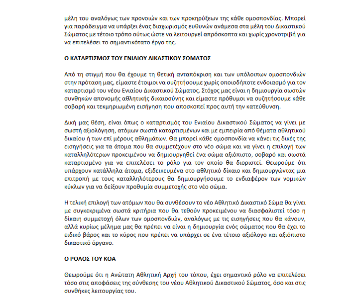 Μέσα από ένα ενιαίο πλάνο δράσης, ως ΚΟΚ θεωρούμε πως μπορούμε να δημιουργήσουμε τις κατάλληλες συνθήκες, ώστε να υπάρξει αναβάθμιση και εξέλιξη των αθλητικών δικαστικών διαδικασιών.