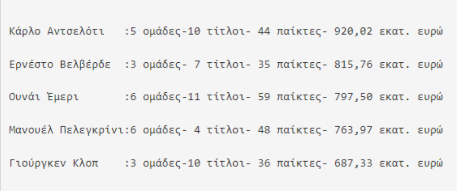 Να σημειωθεί ότι στην 7η θέση είναι ο Βάσκος πρώην προπονητής -και-του Ολυμπιακού, Ερνέστο Βαλβέρδε με 815,76 εκατομμύρια ευρώ.