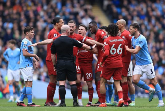 «Η Λίβερπουλ κατηγορείται διότι οι παίκτες της περικύκλωσαν τον διαιτητή στο 34ο λεπτό του αγώνα της Premier League, με τη Μάντσεστερ Σίτι» ανέφερε η ανακοίνωση της ομοσπονδίας συμπληρώνοντας πως «...υποστηρίζεται ότι η Λίβερπουλ απέτυχε να διασφαλίσει πως οι ποδοσφαιριστές της θα είχαν σωστή συμπεριφορά».