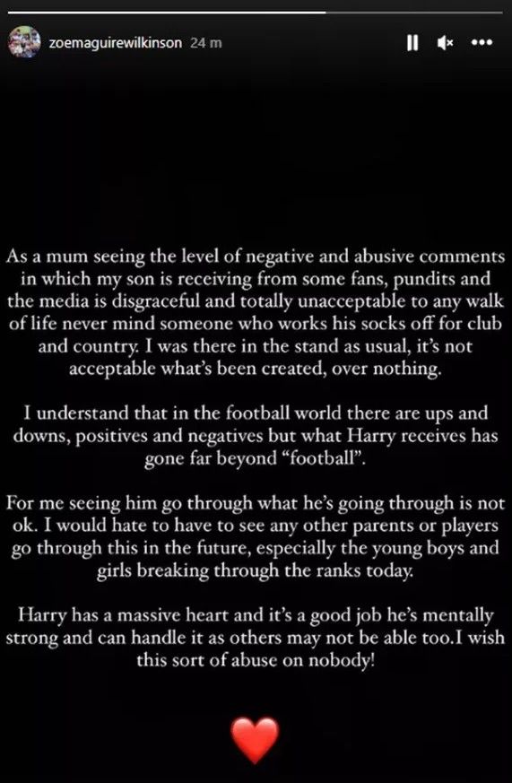 Ο Χάρι Μαγκουάιρ μπήκε στο στόχαστρο των οπαδών και κατά τη διάρκεια του διεθνούς φιλικού της Σκωτίας με την Αγγλία και η μητέρα του, Ζόι, δεν άντεξε και ανέλαβε την υπεράσπισή του μέσω δυναμικής ανάρτησής της στο Instagram.