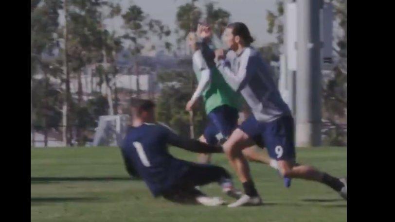 Ο Ζλάταν Ιμπραΐμοβιτς πέταξε τη μπάλα μπροστά σαν να επρόκειτο να τη μοιράσει σε συμπαίκτη του, όμως πρόλαβε να τελειώσει μόνος του τη φάση σε προπόνηση της ομάδας του Λος Άντζελες!