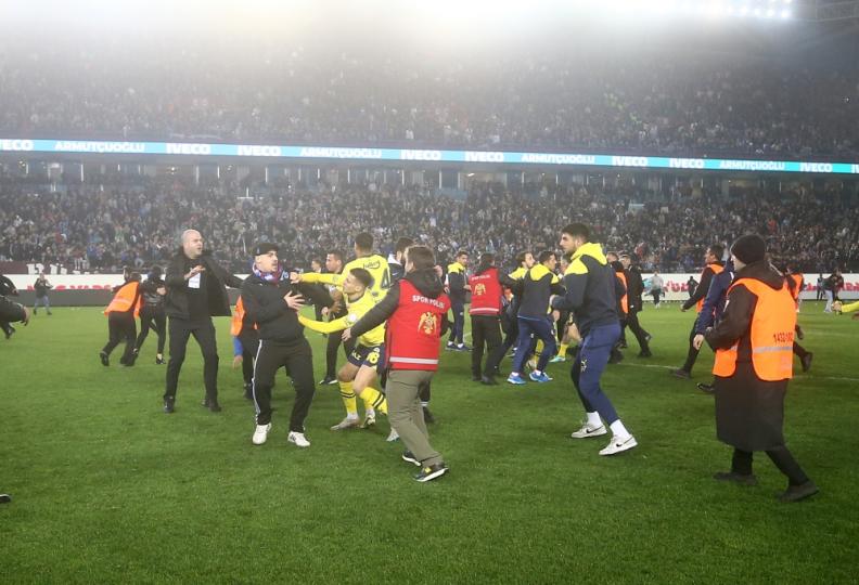 Συγκεκριμένα, αμέσως μετά το τελευταίο σφύριγμα του διαιτητή, δεκάδες οπαδοί των γηπεδούχων μπούκαραν στον αγωνιστικό χώρο και επιτέθηκαν στους παίκτες της Φενέρ, οι οποίοι εκείνη την ώρα πανηγύριζαν στο κέντρο του γηπέδου.