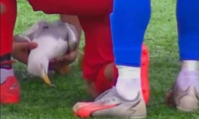 Μετά από αρκετή προσπάθεια ο ποδοσφαιριστής κατάφερε να συνεφέρει το άτυχο πουλί και το μετέφερε με ασφάλεια σε άνθρωπο του γηπέδου, προκειμένου να μεταφερθεί σε κτηνιατρείο.