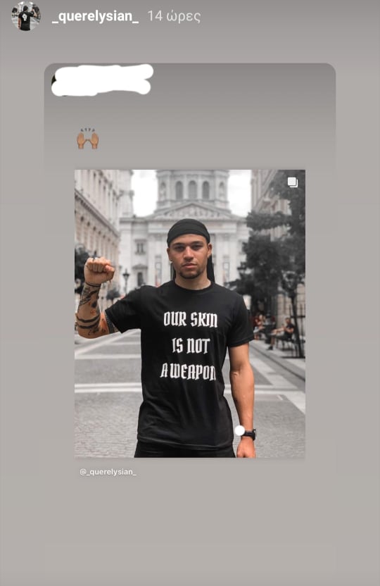 Ο Φάνος Κατελάρης έστειλε το δικό του μήνυμα κατά του ρατσισμού καθώς πόζαρε με την πιο κάτω φανέλα που πάνω γράφει ''το δικό μας δέρμα δεν είναι όπλο''.