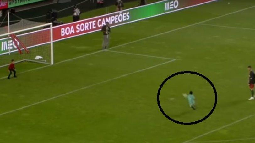 Στο τελευταίο φιλικό της Πορτογαλίας με την Αλγερία στη Λισαβόνα, μετά το ματς, ο Ρονάλντο κάνει νόημα στο γιο του να... κάνει τα δικά του.