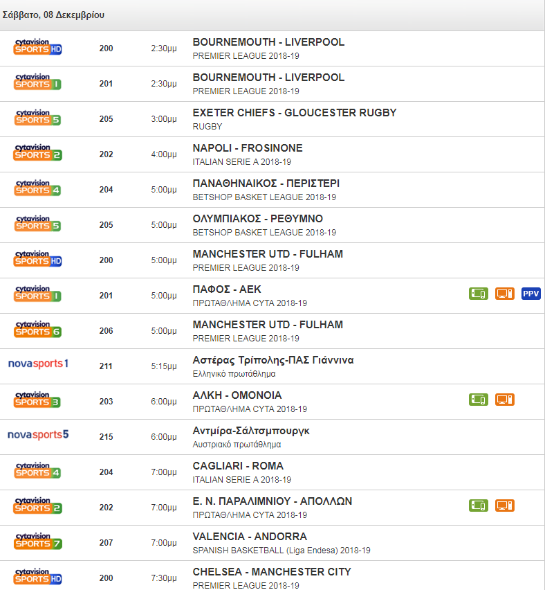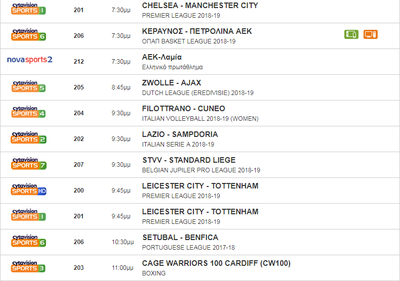 Δείτε πιο κάτω από πού μπορείτε να δείτε τους σημερινούς αγώνες: