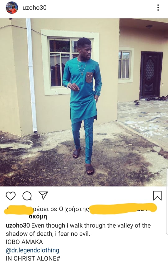 Αυτή τη φορά ο Νιγηριανός τερματοφύλακας έστειλε το δικό του μήνυμα αφού δημοσίευσε μια φωτογραφία δική του και έγραψε σαν στιχάκι πως ''παρόλο που περπατώ μέσα στην κοιλάδα της σκιάς του θανάτου, δεν φοβάμαι κανένα κακό''.