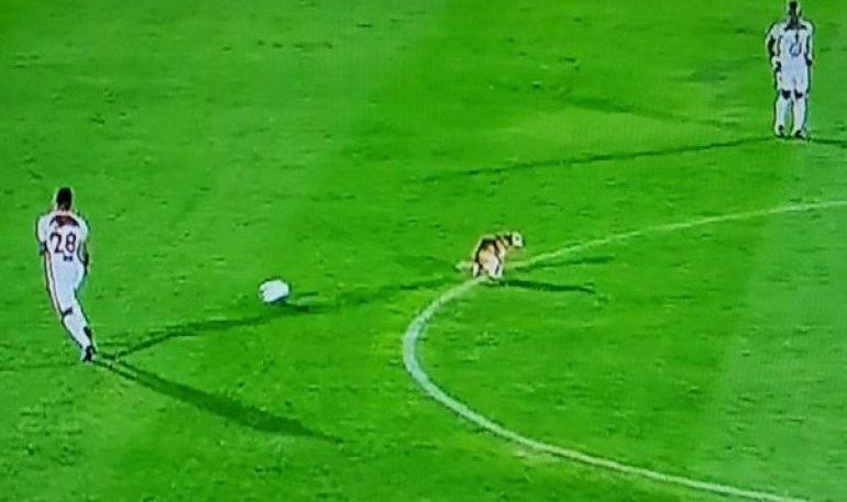 Τετράποδος εισβολέας έψαχνε λίγο γρασίδι για να ανακουφιστεί και έκανε την ανάγκη του στο κέντρο του γηπέδου, με το παιχνίδι να συνεχίζεται κανονικά.