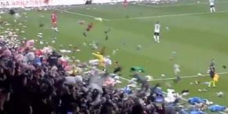 Πέταξαν στο γήπεδο κουκλάκια για τα παιδιά από τις σεισμόπληκτες περιοχές