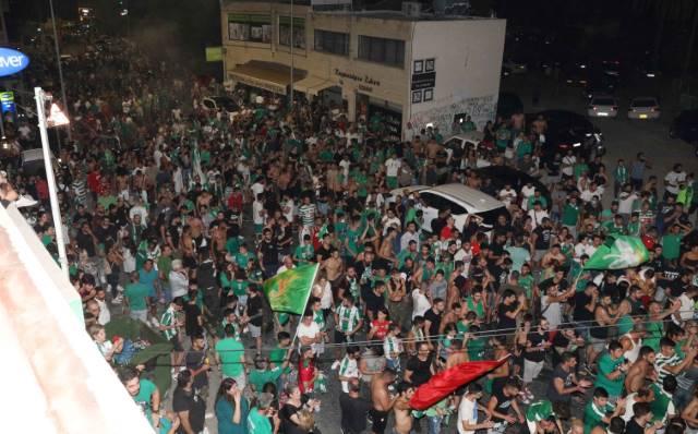 Μετά την αποθέωση που γνώρισαν στο ΓΣΠ η αποστολή της Ομόνοιας, το λεωφορείο πέρασε και από το Fan Club Lakatamia, εκεί όπου τους περίμεναν χιλιάδες φίλοι των "πρασίνων". Στιγμές μαγείας χθες βράδυ στη Λακατάμεια, με κόσμο και ομάδα να το απολαμβάνει. Δείτε φωτορεπορτάζ από το φωτογραφικό φακό του Savvides Press Sports Photographers.