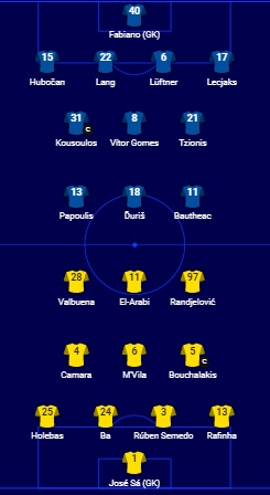 Τρεις αλλαγές από τον Νορβηγός τεχνικό, εκτός οι Γκόμεθ, Τιάγκο και Σενέ. Στη θέση τους οι Κούσουλος, Τζιωνής και Ντούρις στην κορυφή της επίθεσης.