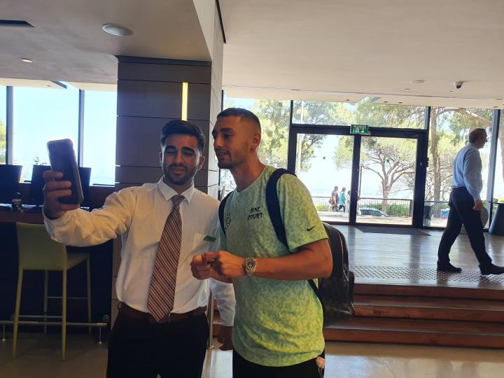 Δείτε πλάνα από την άφιξη της Μακάμπι στο ξενοδοχείο για γεύμα και μάθημα πριν από τον αγώνα κόντρα στον Απόλλωνα.
