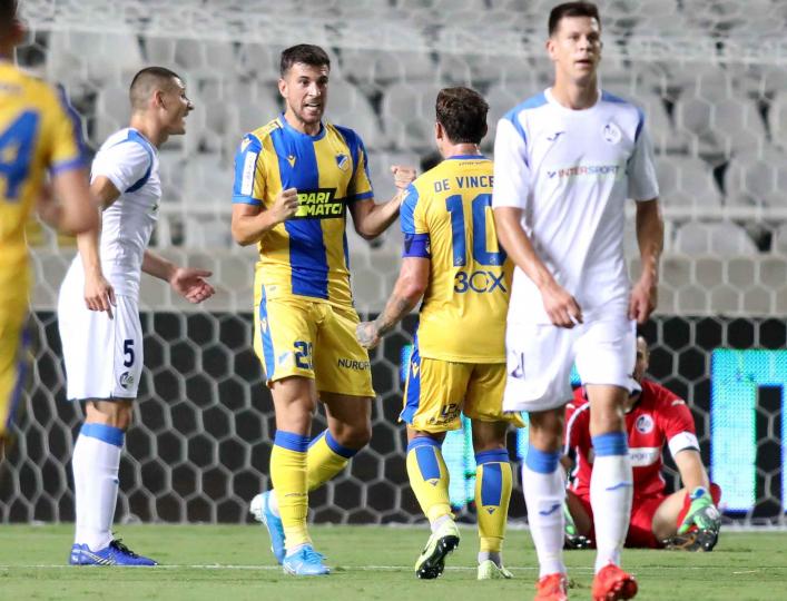 Στο 13ο λεπτό ο ΑΠΟΕΛ πήρε κεφάλι στο σκορ. Ο γνωστός… Τάμαρι πήρε την μπάλα από πλάγια θέση μπήκε στην περιοχή έκανε το σουτ με την μπάλα να κοντράρει στα πόδια Giljen, στρώθηκε στην συνέχεια στον Πάβλοβιτς ο οποίος σε κενή εστία έστειλε την μπάλα στα δίκτυα κάνοντας το 1-0. Ο Σέρβος επιθετικός άνοιξε και επίσημα λογαριασμό με την φανέλα των γαλαζοκιτρίνων.
