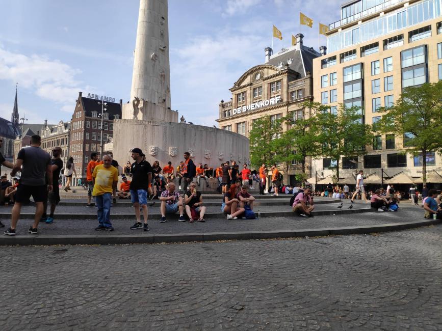 Η πλατεία Νταμν άρχισε να παίρνει χρώμα πορτοκαλί. Οι οπαδοί του ΑΠΟΕΛ ετοιμάζονται για τον επαναληπτικό αγώνα με τον Άγιαξ με pre game σε μια από τις πιο γνωστές πλατείες του Άμστερνταμ.
