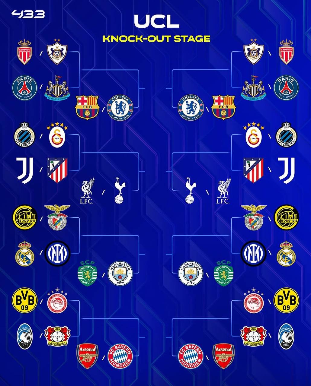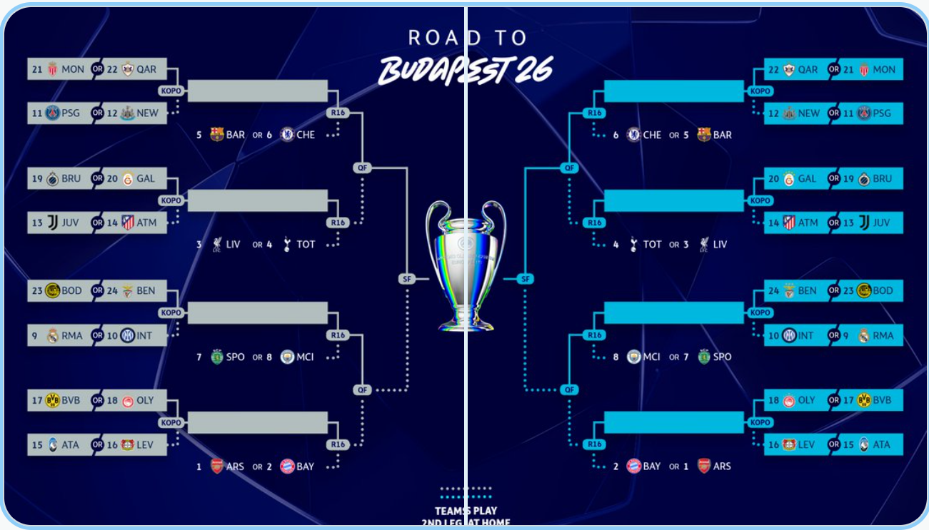 Αξίζει να αναφέρουμε ότι ο νικητής του ζευγαριού του Ολυμπιακού σταυρώνει στους 16 είτε με την ομάδα που τερμάτισε πρώτη στην League phase (Άρσεναλ) είτε με την δεύτερη (Μπάγερν Μονάχου).