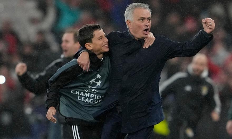 Στον πάγκο, ο Ζοσέ Μουρίνιο έζησε τη στιγμή με τον δικό του, μοναδικό τρόπο. Ο Πορτογάλος τεχνικός ξέσπασε σε πανηγυρισμούς και αγκάλιασε έναν ball boy, με τους δυο τους να πανηγυρίζουν μαζί μπροστά στην εξέδρα, σε μια εικόνα που ήδη κάνει τον γύρο του κόσμου.