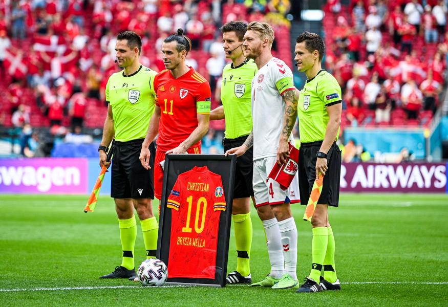 Πιο συγκεκριμένα πριν την έναρξη του αγώνα που άνοιξε την αυλαία της φάσης των «16» ο αρχηγός της Ουαλίας, Γκάρεθ Μπέιλ, δώρισε τον αρχηγό της Δανίας, Σίμον Κάιερ, μια φανέλα της Εθνικής Ουαλίας που είχε τυπωμένο το όνομα του Έρισκεν (σ.σ. το Κρίστιαν) και είχε πάνω τις υπογραφές όλων των ποδοσφαιριστών της ομάδας του Ρομπ Πέιτζ.