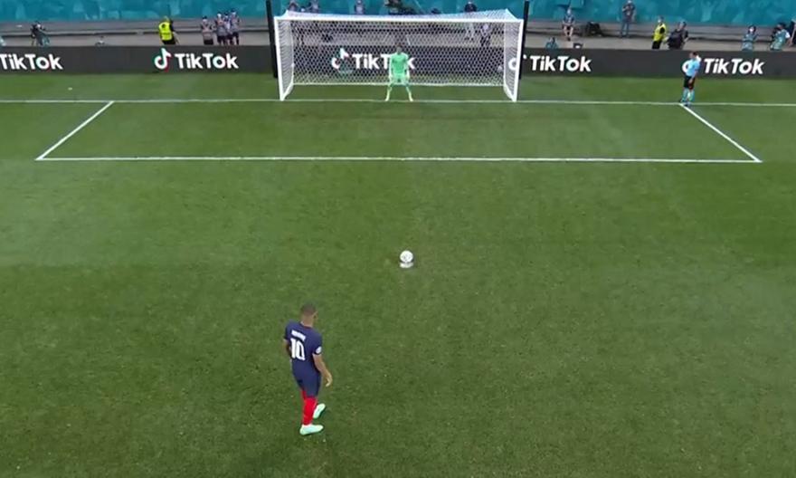 Ο Ζόμερ να πέφτει στη σωστή γωνία και να αποκρούει την εκτέλεση του Εμπαπέ. Ήρωας για τους Αυστριακούς ο πρώτος, μοιραίος για τους Γάλλους ο δεύτερος.