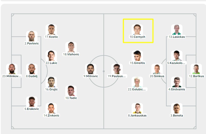 Στο αρχικό σχήμα της Εθνικής Λιθουανίας, για το παιχνίδι με τη Δερβία βρίσκεται ο Φέντορ Τσέρνιχ.