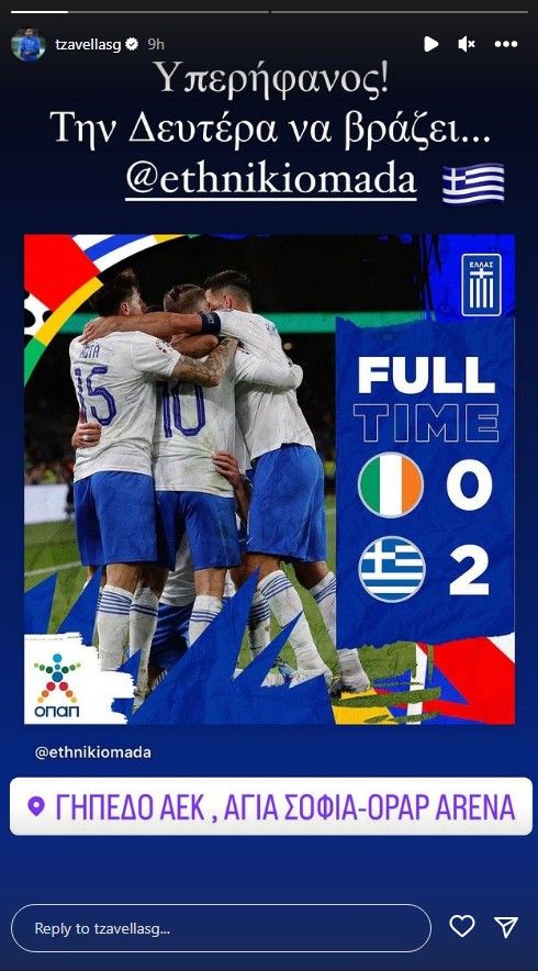 Ο Γιώργος Τζαβέλλας με ένα story στον λογαριασμό του στο Instagram έκανε κάλεσμα προς τον κόσμο για το ματς με την Ολλανδία στην OPAP Arena.