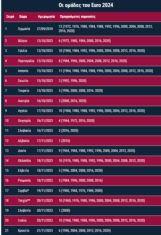 Ολοκληρώθηκε η διαδικασία των προκριματικών του Euro 2024 και 21 εθνικές ομάδες γνωρίζουν ήδη πού θα βρίσκονται το επόμενο καλοκαίρι.