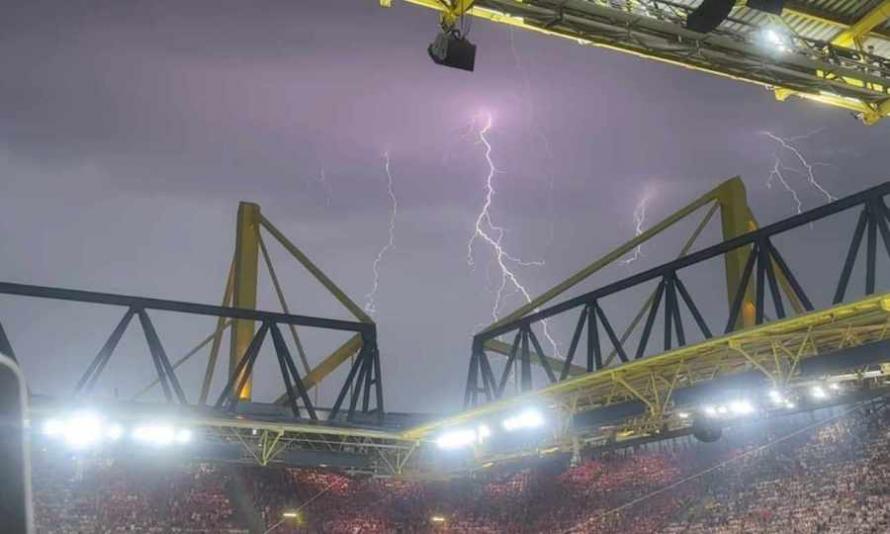 Στο 35ο λεπτό, ο διαιτητής της αναμέτρησης διέκοψε το ματς Γερμανία-Δανία λόγω κεραυνού που έπεσε κοντά στο «Signal Iduna Park».