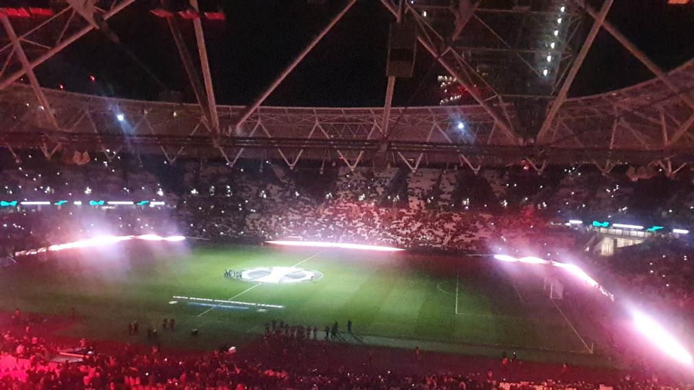 Εντυπωσιακό ήταν το τελετουργικό που ετοιμάστηκε στο London Stadium, πριν από την έναρξη του αγώνα Γουέστ Χαμ - ΑΕΚ για την φάση των «16» του Κόνφερενς Λίγκ.