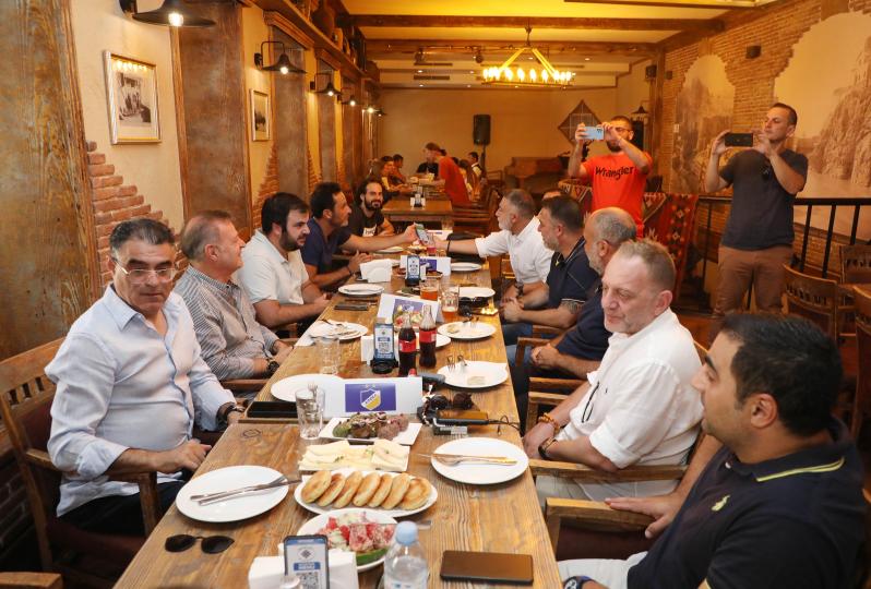Γευμά παρέθεσε σήμερα το μεσημέρι η διοίκηση του ΑΠΟΕΛ στους εκπροσώπους των ΜΜΕ που ταξίδεψαν στην Γεωργία ενόψει και του αποψινού αγώνα της ομάδας κόντρα στην Ντίλα Γκόρι.