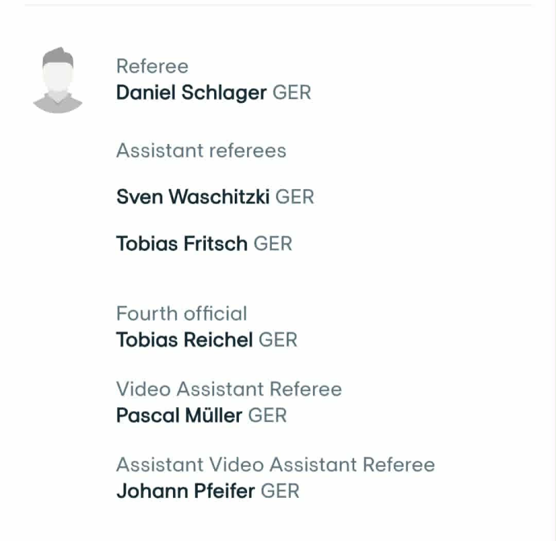 Όλη η διαιτητική ομάδα προέρχεται από τη Γερμανία. Επικεφαλής διαιτητής ορίστηκε ο Ντάνιελ Σλάγκερ, ενώ στο VAR θα είναι ο Πασκάλ Μίλερ. Ο αγώνας είναι προγραμματισμένος για την Πέμπτη 02/10 στις 22:00.