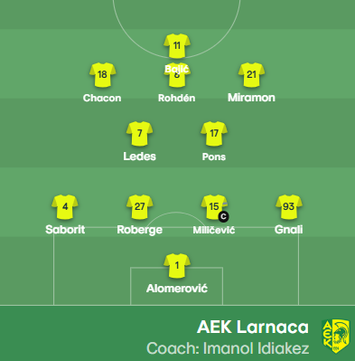 Ο Ιμανόλ Ιδιάκεθ επέλεξε τους έντεκα που θα ξεκινήσουν το ματς, στοχεύοντας σε μια σπουδαία εμφάνιση για την League Phase του Conference League για τη δεύτερη αγωνιστική του.