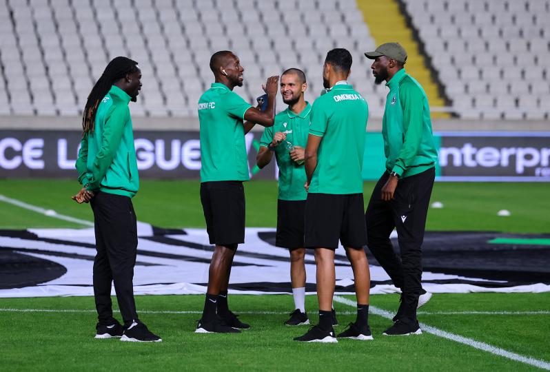 Πηγαδάκια ανάμεσα στους ποδοσφαιριστές της Ομόνοιας, στον αγωνιστικό χώρο του ΓΣΠ, πριν τον Ευρωπαϊκό αγώνα με την Ντιναμό Κιέβου, για την 4η αγωνιστική της League Phase του Conference League. Οι πράσινοι, θα ψάξουν τη πρώτη νίκη στην κύρια φάση της διοργάνωσης, έτσι ώστε να έχουν πιθανότητες για πρόκριση στην επόμενη φάση.