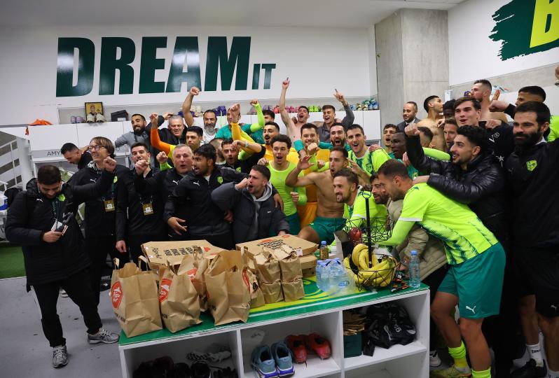 Οι ποδοσφαιριστές, το τεχνικό επιτελείο και τα μέλη της διοίκησης έγιναν ένα σώμα, με φωνές, συνθήματα και αυθόρμητους πανηγυρισμούς για την ιστορική πρόκριση στους «16» του Conference League. Η ΑΕΚ πέρασε αήττητη και το πανηγύρισε εντός και εκτός γηπέδου.