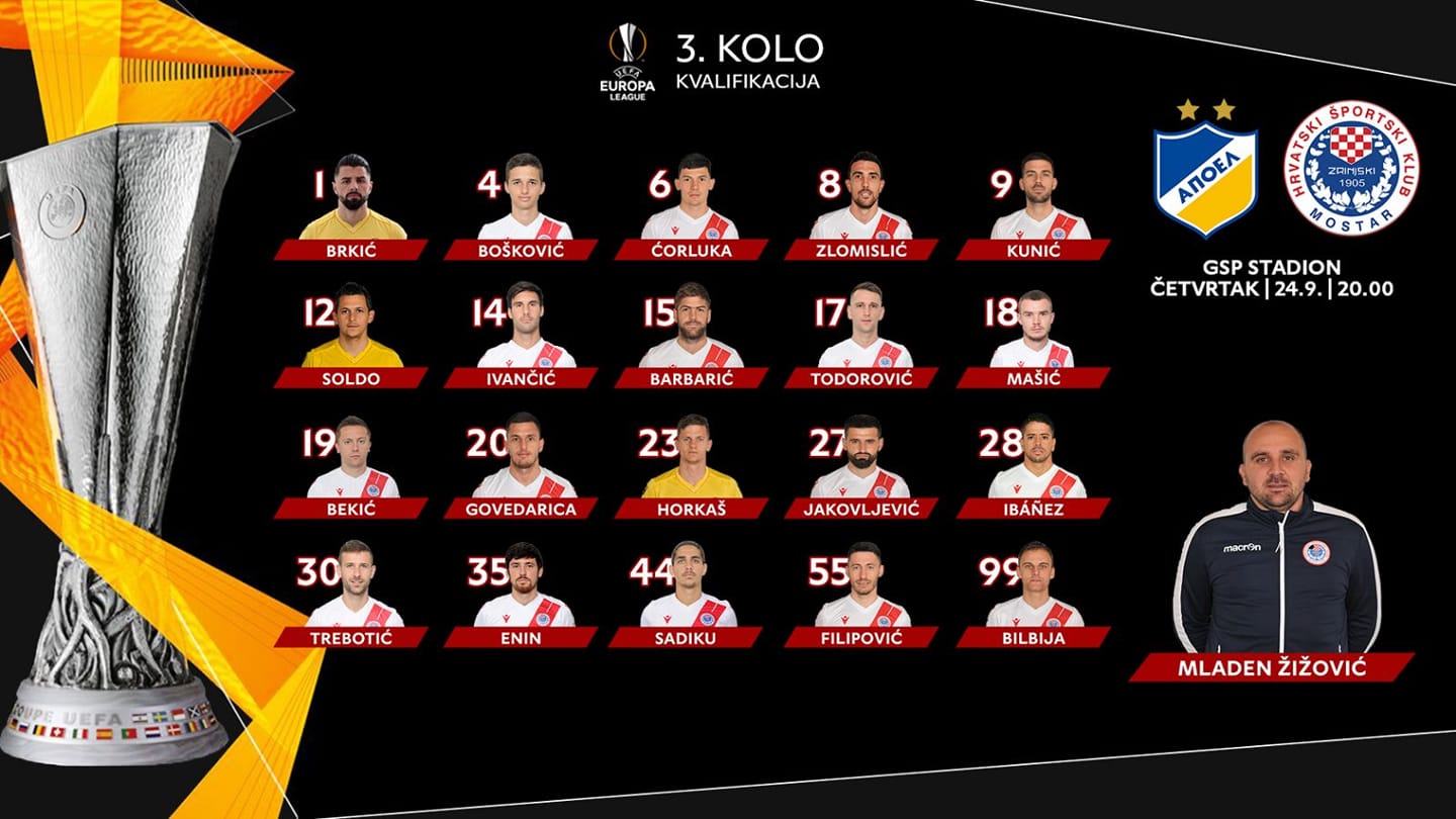 Η Ζρίνσκι έρχεται Κύπρο με 20μελής αποστολή και τον αρχηγό της ομάδας να μένει στη Βοσνία για προσωπικούς λόγους, ενώ εκτός αποστολής παρέμεινε και ο Mario Ticinovic ο οποίος υποφέρει από στομαχόπονο.