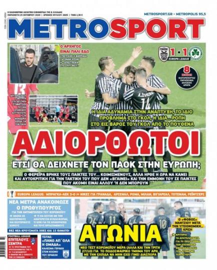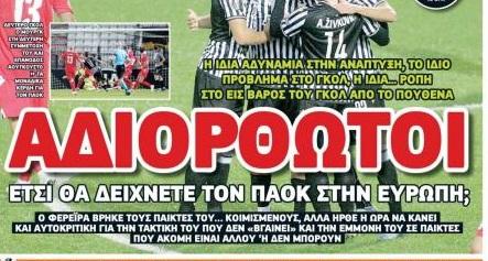Δείτε τα πρωτοσέλιδα στην Ελλάδα μετά την ισοπαλία του ΠΑΟΚ κόντρα στην Ομόνοια (1-1) στην πρεμιέρα των ομίλων του Γιουρόπα Λιγκ.