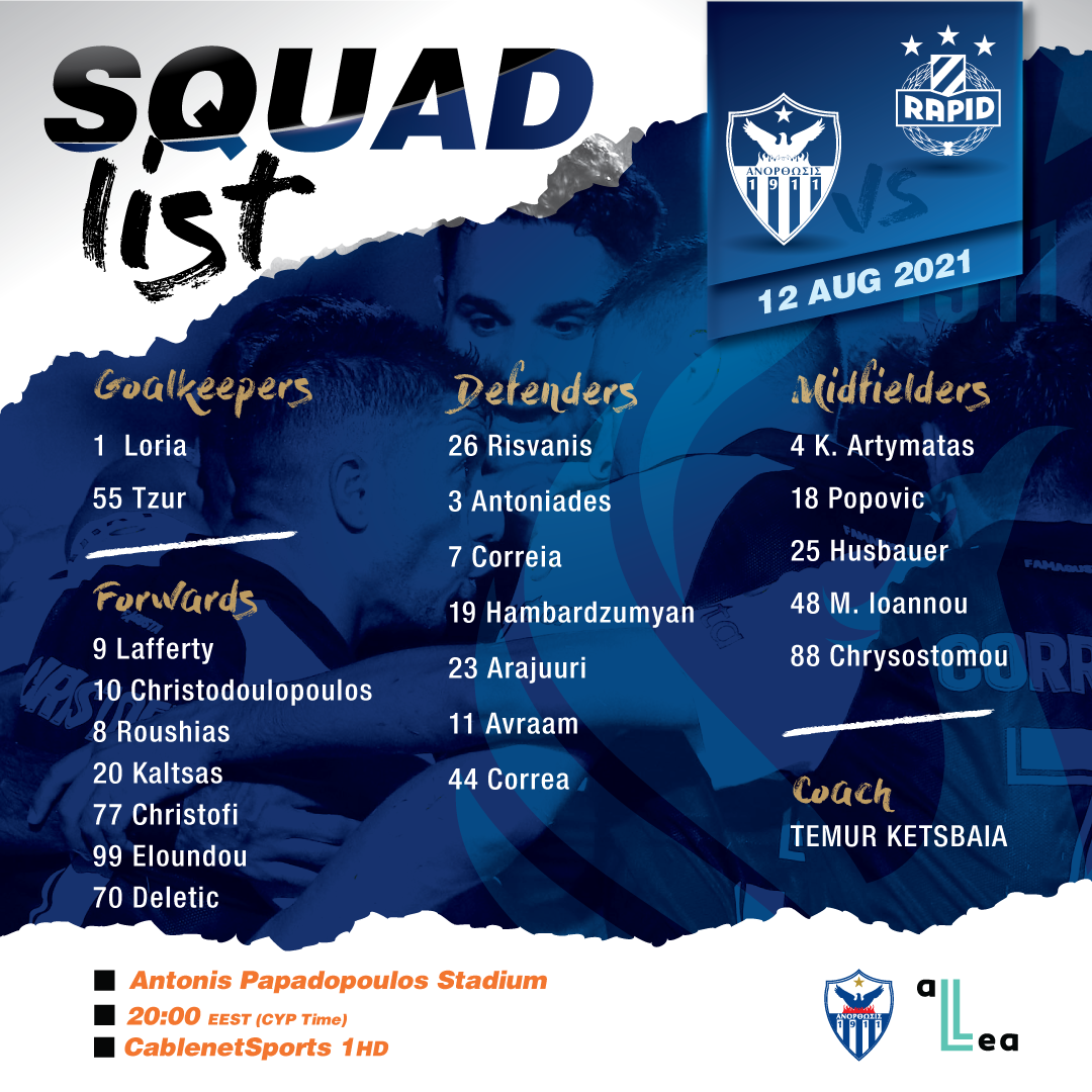 Η Ανόρθωση προχώρησε στην ανακοίνωση της αποστολής ενόψει του αγώνα με την Ραπίντ Βιέννης.