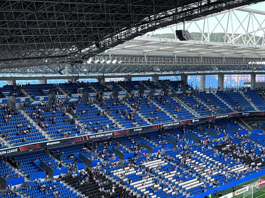 Δέκα λεπτά πριν την έναρξη του αγώνα Ρεάλ Σοσιεδάδ - Ομόνοια, βλέπουμε αρκετά κενά καθίσματα στις κερκίδες του Ρεάλε Αρένα. Οι εκτιμήσεις των Ισπανών μιλούσαν για 28 - 30 χιλιάδες, όμως για την ώρα αυτός ο αριθμός είναι αρκετά μακριά... Αναμένουμε τα νεότερα με την έναρξη του αγώνα, αφού υπάρχει και αρκετός κόσμος εκτός.