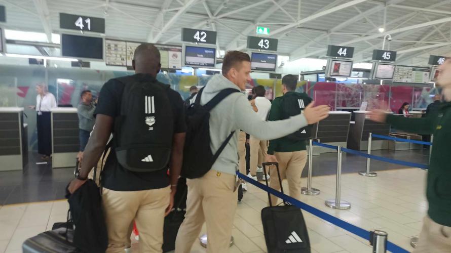 Η αποστολή των πρωταθλητών έφτασε λίγο μετά τις 08:00 στο αεροδρόμιο Λάρνακας, απ' όπου η αναχώρηση για τη χώρα της Ιβηρικής είναι προγραμματισμένη για τις 09:30.