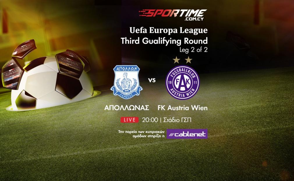 Το SPORTIME σου δίνει την δυνατότητα να συμμετάσχεις ενεργά στον επαναληπτικό αγώνα Απόλλων-Αούστρια Βιέννης. Κάνε την ερώτηση σου έκφρασε την άποψη σου και πάρε και εσύ μέρος στην μετάδοση του αγώνα στην Live μετάδοση μας. Γράψε αρχικά το όνομα σου και μετά το σχόλιο σου στο πλαίσιο πιο κάτω.