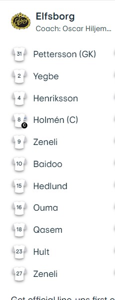 Ακριβώς ίδια 11άδα όπως στο παιχνίδι με την Μπρομαποϊκάρνα που παρέταξε το Σάββατο 6/7 και νίκησε με 3-0, παρατάσσει την Έλφσμποργκ ο Όσκαρ Χίλιεμαρκ απέναντι στην Πάφο FC.