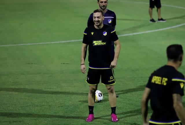 Στις προπονητικές του εγκαταστάσεις στον Αρχάγγελο κι όχι στο ΓΣΠ, ως είθισται, ολοκληρώνει την προετοιμασία του για τον αγώνα της πρεμιέρας των ομίλων του Γιουρόπα Λιγκ απέναντι στην Ντουντελάνζ ο ΑΠΟΕΛ.