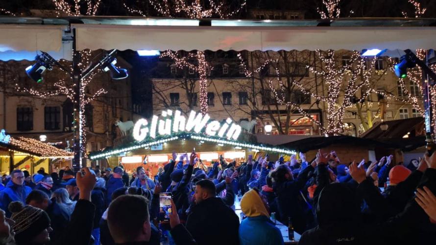 Οι φίλοι του ΑΠΟΕΛ έκαναν… κατάληψη στην πλατεία Place d'Armes, την έντυσαν στα πορτοκαλί και ετοιμάζονται για το μεγάλο παιχνίδι με τη Ντουντελάνζ.