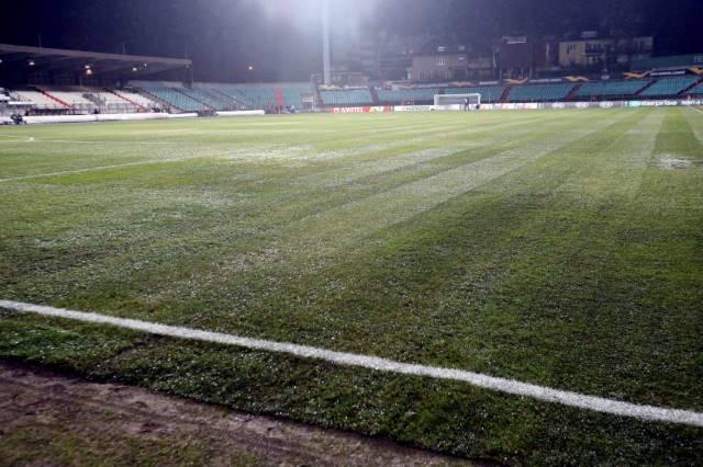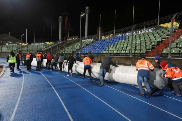 Ο φωτογραφικός φακός του Savvides Press Sports Photographers μας μεταφέρει το υλικό από τον αγωνιστικό χώρο του Ζόσι Μπαρτέλ, δύο ώρες πριν την έναρξη του αγώνα. Όπως βλέπεται και στις φωτογραφίες υπάρχει νερό σε κάποια σημεία του γηπέδου.